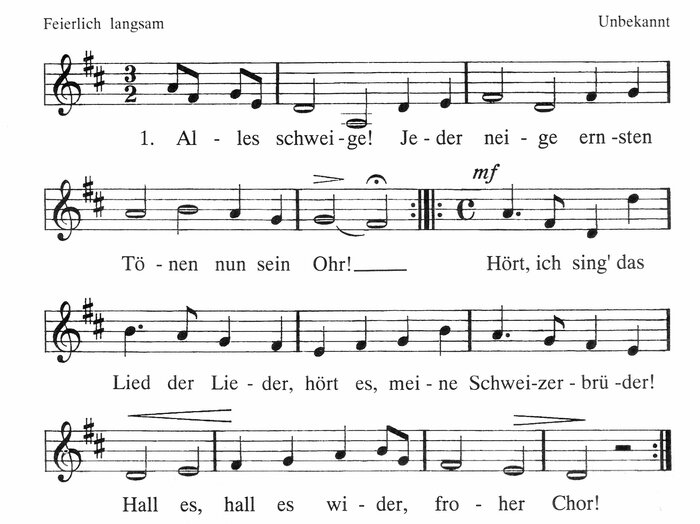 : Hört, ich sing´ das Lied der Lieder, hört es meine Schweizerbrüder!