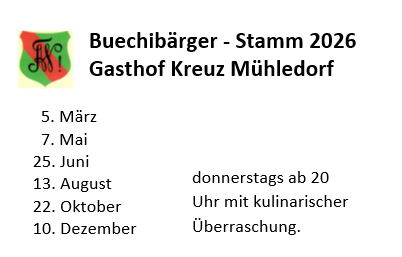 Im laufenden Jahr findet der Stamm (mit kulinarischer Überraschung) jeweils an einem Donnerstag ab 20:00 Uhr an folgenden Daten statt: