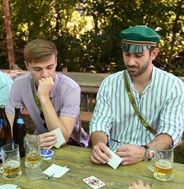| 18:00 – 21:00 Uhr | Live Music der Band The 2 of Us auf der Hauptbühne; das virtuose Duo aus Solothurn spielt einen spannenden Mix aus Pop, Folk, Rock, Blues, Jazz und Country in mehreren Sets. Dazwischen und danach pflegen wir das studentische Liedgut! |